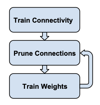 (pruning + retraining)을 한 번의 과정이라고 할 때, 이를 여러 번 반복해서 최소한의 connection을 찾을 수 있다.