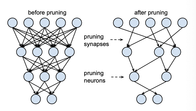 connection을 pruning 한 후에, neurons을 보면 input or output connection이 없는 neuron들을 제거할 수 있다.