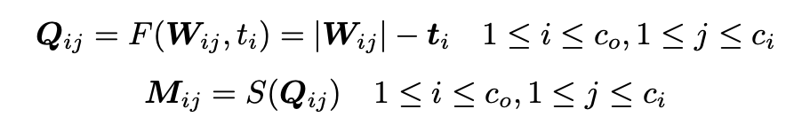 또한, step function $S(x)$를 정의하여, paramter magnitude와 해당 threshold에 따라 mask를 구한다.