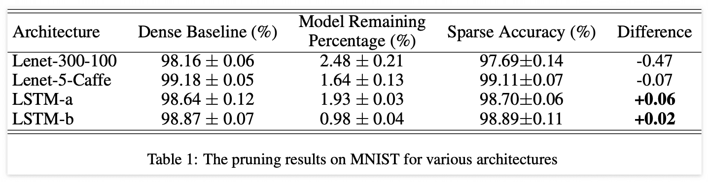 아주 약간의 performance loss가 있지만, dense network와 동일한 epoch로 쉽게 sparse network를 학습시킬 수 있다.