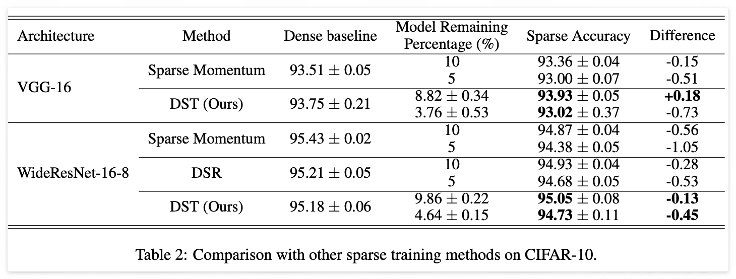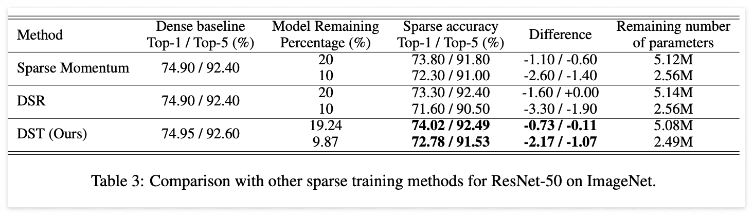 왜 DST가 효율적이고 효과적인지에 대한 증거도 제시하면서, 기존 3-stage algorithms (dense, prune, retrain)의 문제점도 밝혔다.