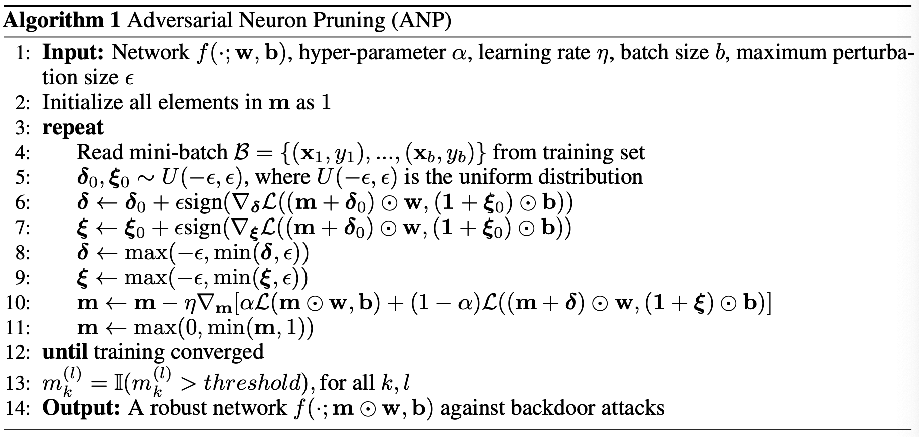 위에서 언급한 관련성을 기반으로, sensitive neurons를 pruning하여 제거한다. 이때, clean data 정확도 손실을 막기위해 bias는 프루닝하지 않는다.