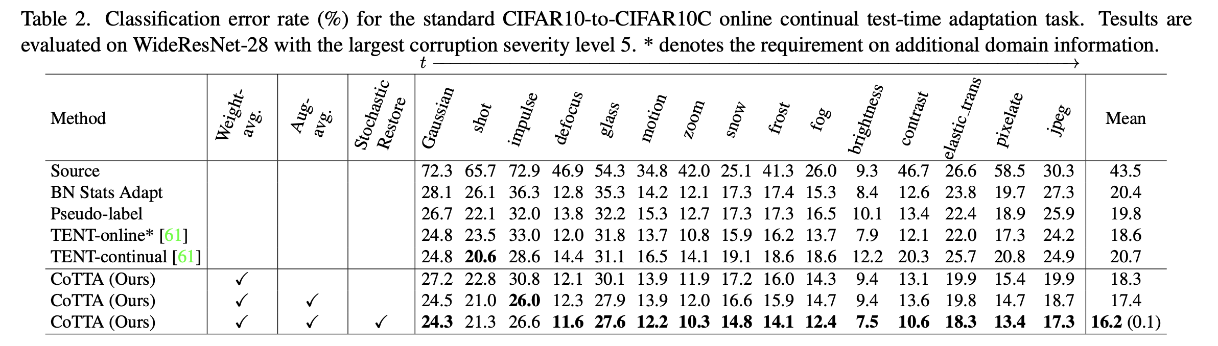- 좀 더 정확한 weight-averaged prediction을 pseudo-label로 사용할 수 있기에, model은 continual adaptation에서 error accumulation을 겪을일이 줄어든다.