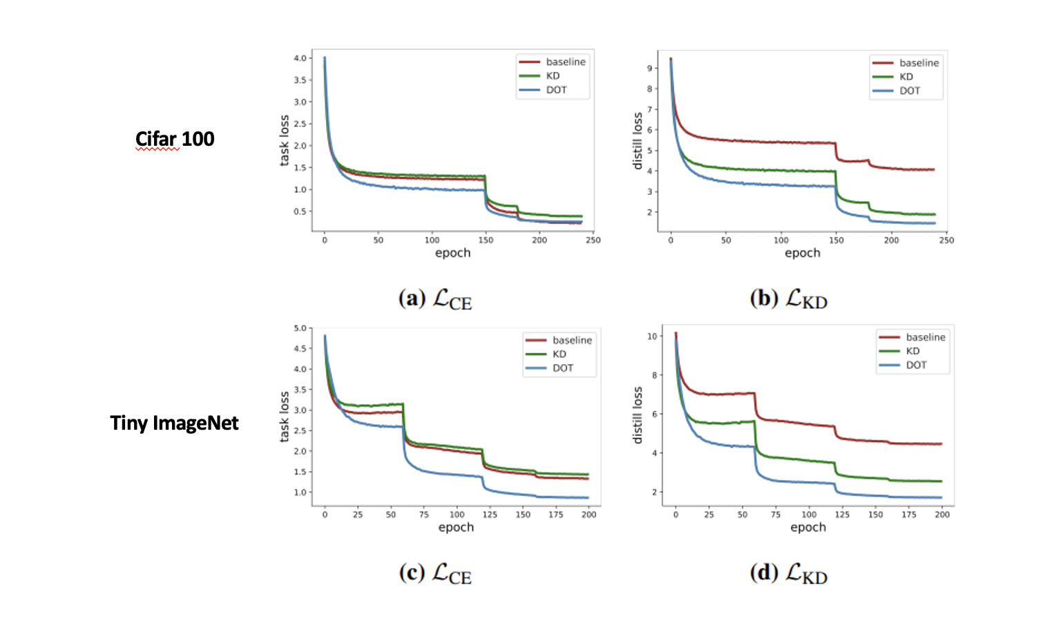 DOT에서는 distillation를 더욱 최적화했으니, 더 flat해지는 것을 보였다.