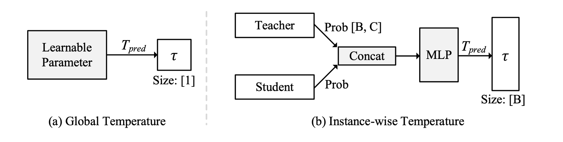 Instance-wise Temperature의 경우, Teacher와 Student의 확률분포를 concat해서, 2layer MLP를 통해 prediction하여 사용한다.
