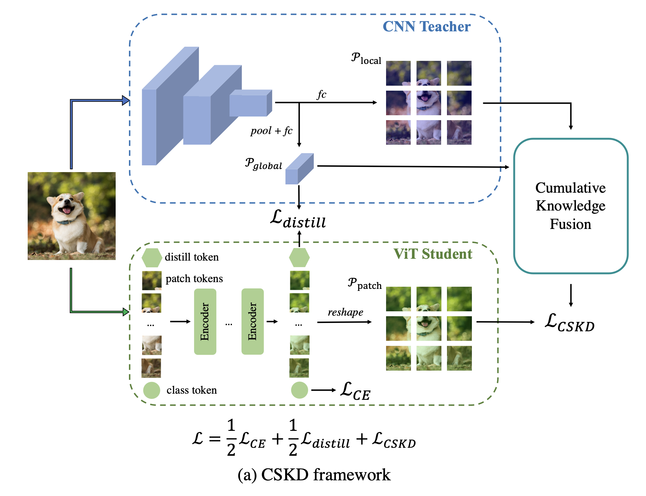 논문에서는 기존 DeiT구조와 loss에 $L_{CSKD}$를 새로 정의한다.