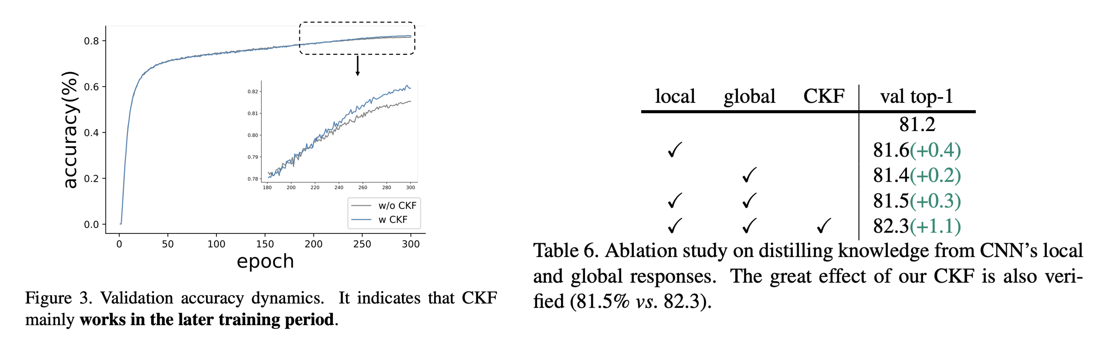 동시에, CNN과 ViT의 capability로 인한 mismatching 문제를 CKF라는 epoch에 따라서 global / local로 변환해주는 term을 추가하여 해결함을 보였다.