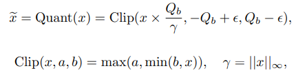 Activation은 8-bit precision으로 학습중에는 모든 activation에 대해서, 추론에는 토큰별로 quantization을 합니다.