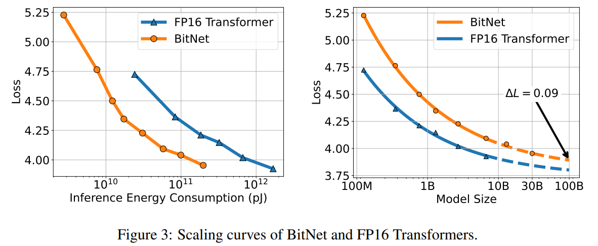 또한, full-precision Transformer처럼, scale을 키우면 성능이 더 좋아지는 scaling법칙을 따르는 것도 확인했습니다.