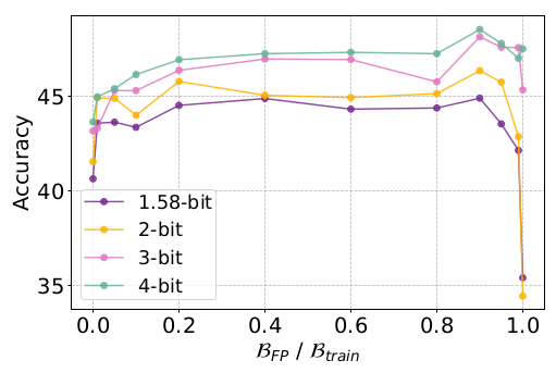 QAT는 $\beta_{FPT}$ (Full Precision Training) + $\beta_{QAT}$ QAT 로 나눌 수 있는데, 이 학습 비율은 어떻게 하는 것이 좋을까?