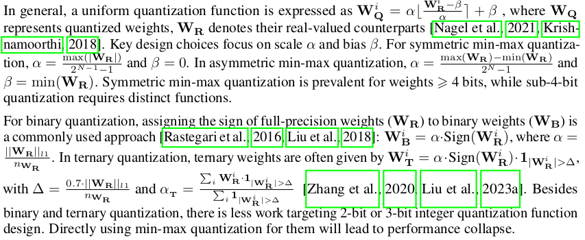 - 이러한 현상은 extremely low bit quantization에서 min-max quantization을 사용하면 심하게 발생합니다.