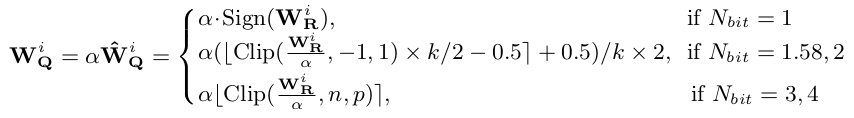 - Binary quantization에서는 $W_{R}$의 부호만 가져다가 $W_{B}$로 사용하는게 일반적입니다.